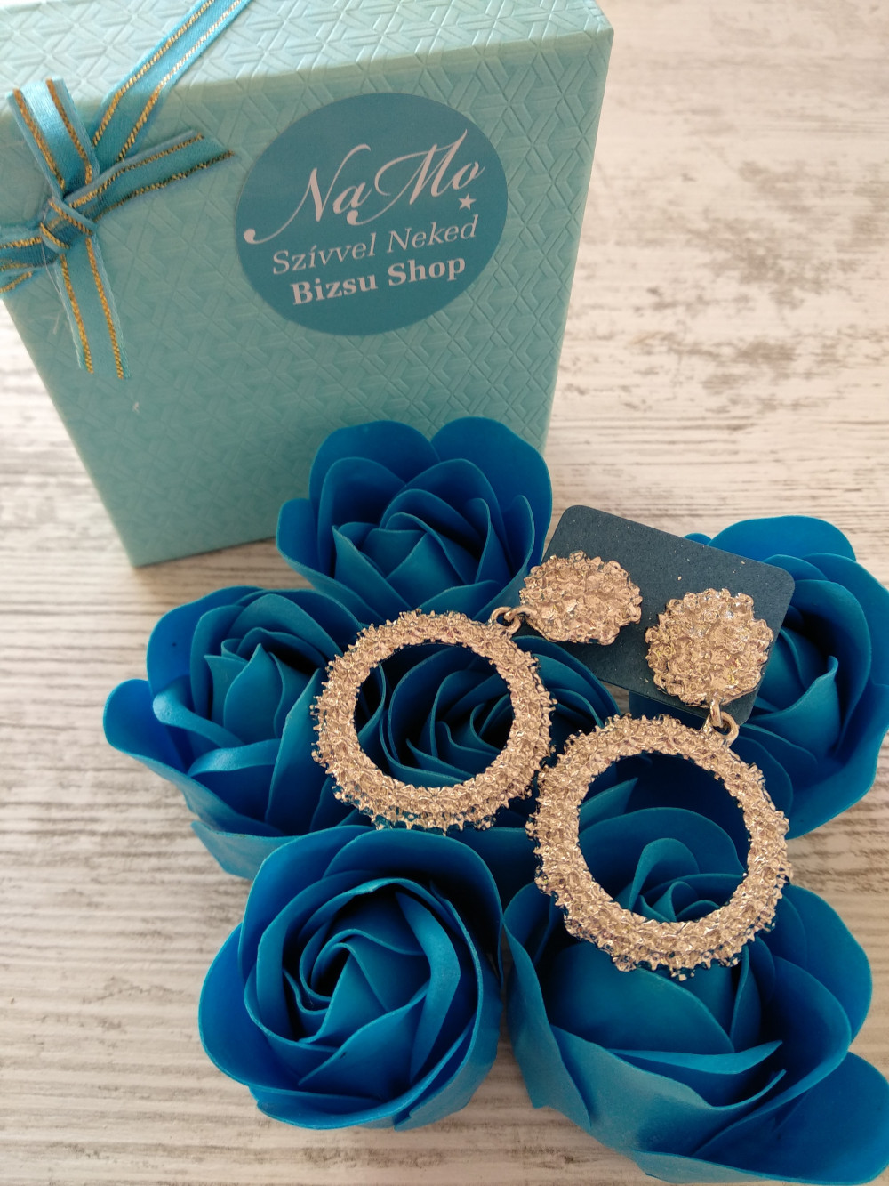 A kristállyal díszített fülbevaló elegáns, kifinomult. Mély élénk csillogásukkal csodálatosan hangsúlyozhatja arcunk formáját és szemünk színét.